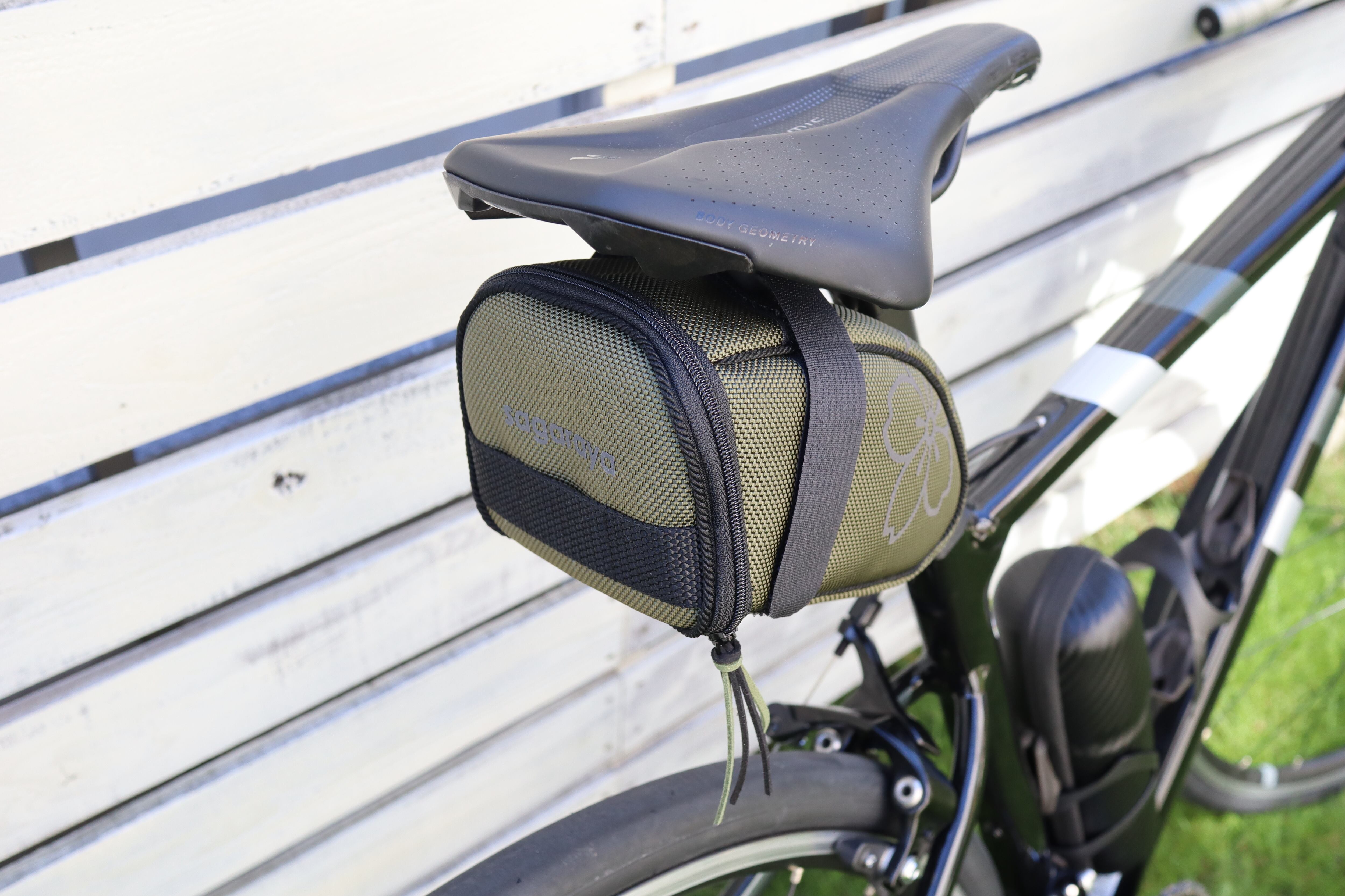 市販の小さいサドルバッグよりは大きめ、でも邪魔にならないサイズ感に仕上げました。